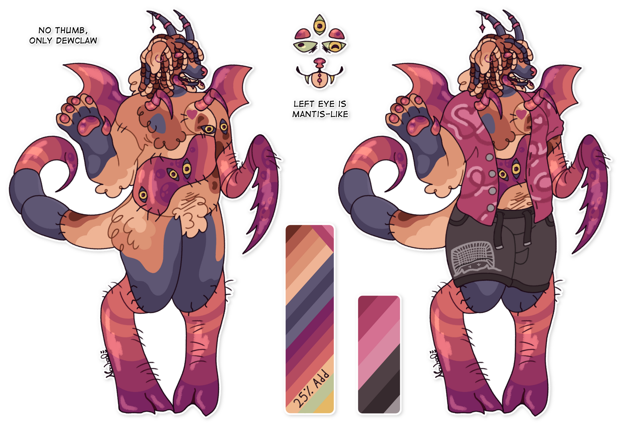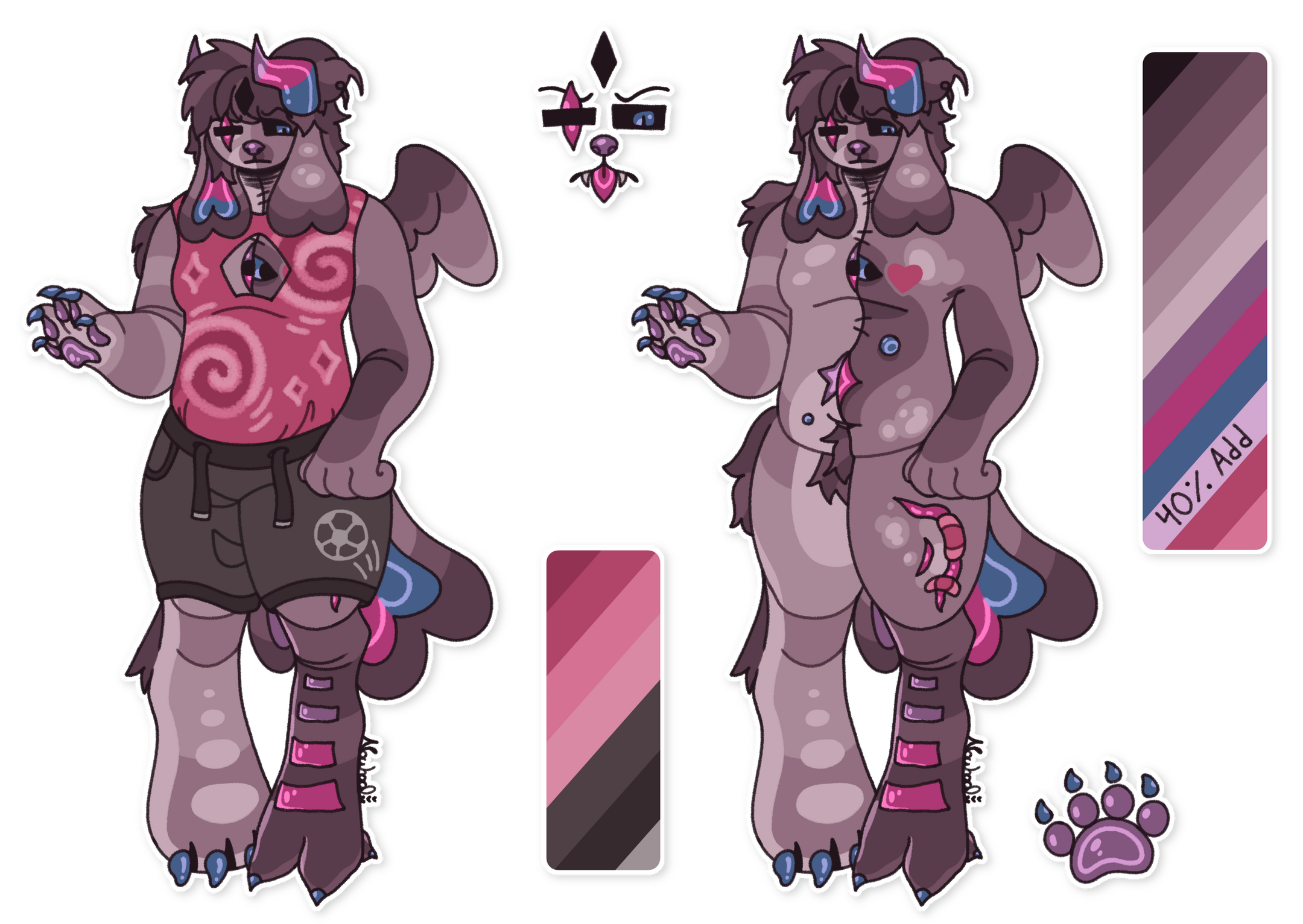 Body part (paw, eye, mouth, tail, wing, etc.) side references, color boxes, and smaller accessories are free! Just let me know if you'd like any.Customs can also be redesigns, forms of existing characters, AUs, CBCs, or fandom OCs. However, I will not create designs based off of anything on my DNI or in my Will Not Draw lists.